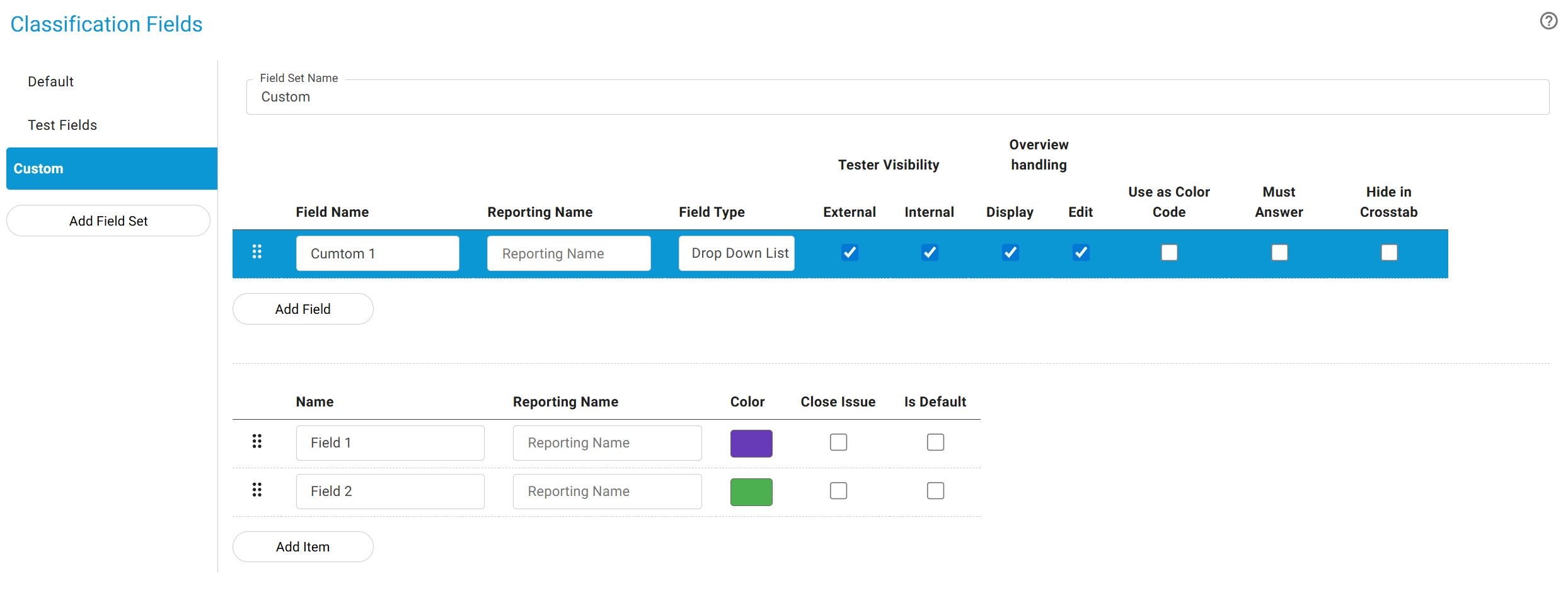 Tester Visibility: Decide who sees the field (external testers, managers, QA).