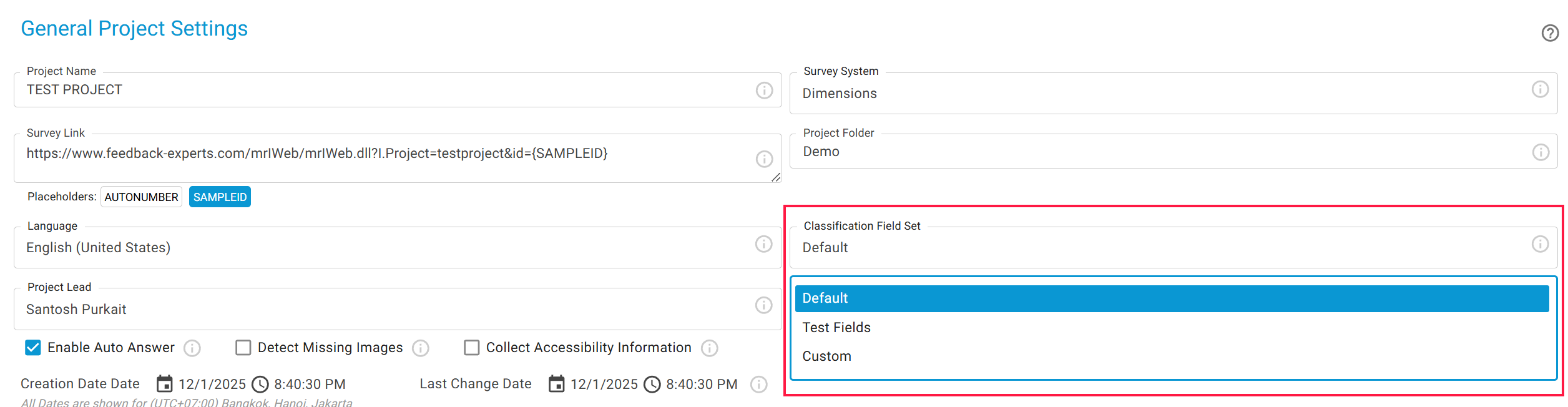Likewise, Admin can set a custom Classification filed that can be set for sepcfic proejcts -ADD FIELD SET