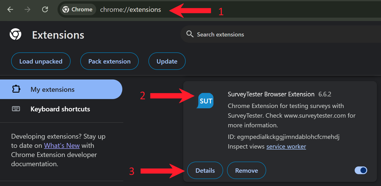 1. Open the browser extensions page by typing "chrome://extensions" in the browser address bar.